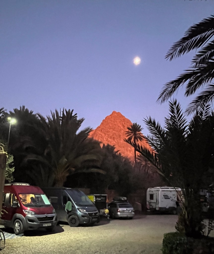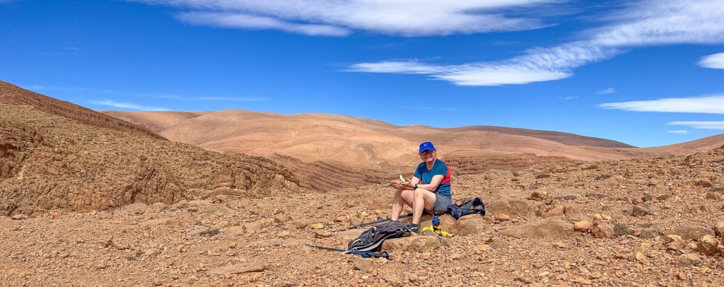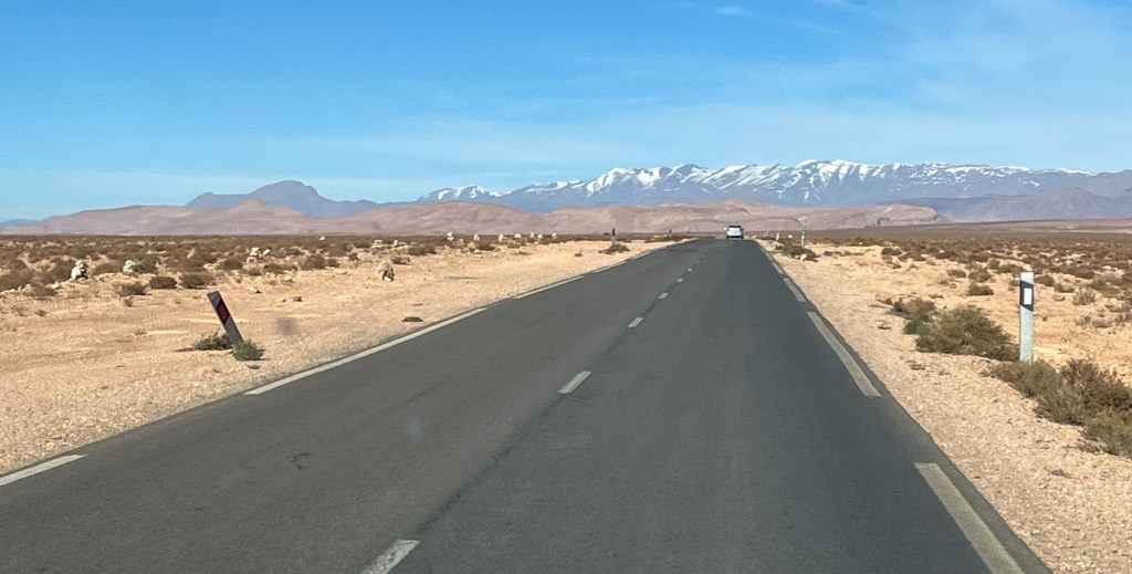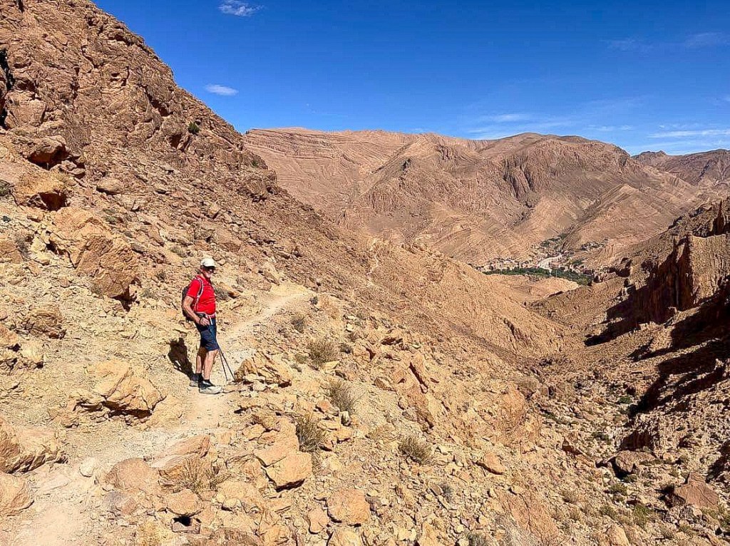 For noen uker. Fra sanddyner i Sahara, via steinørken, dype daler og kløfter i Atlasfjella, videre til vingårder i sentrale Marokko. Hele februar har vært en nydelig sommerferie. Mange fine gåturer. Dagstemperaturer på opptil 25 varmegrader.
