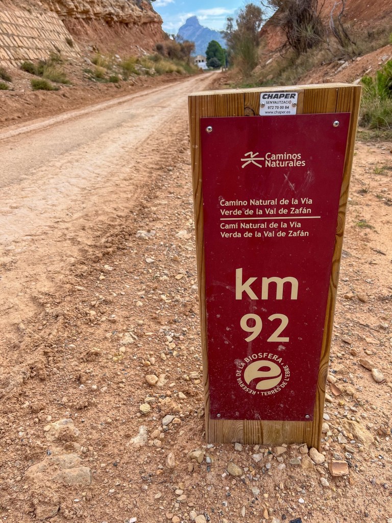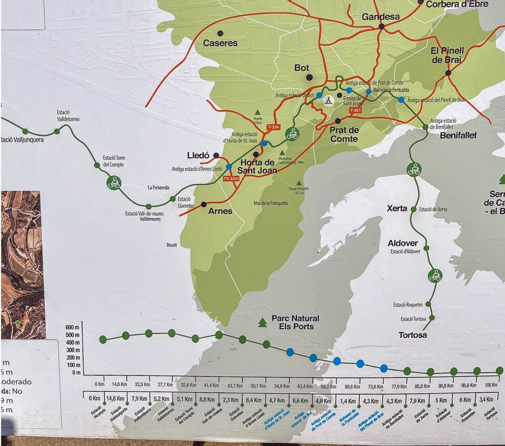 Vi bodde i Bot. Via Verde’en går fra Tortosa til Alcañis. Totalt er den på 105 km. Ut fra campingen i Bot fikk vi to fine dagsturer til fots.Igjen hadde vi noen gode sensommerdager.Det var 40 tuneller på strekingen. Vi gikk gjennom 20 av dem.En gammel jernbanevogn har fått ett forlenget liv som cafe/bar.Litt trist at disse gamle stasjonsbygningene ikke blir tatt vare på.I Provence vandret vi i området der Picasso levde sine siste leveår. Her i området har han også bodd. Ett noe falmet portrett på en lokomotivstall. Byen Bot var stolt av nasjonalparken den ligger ved siden av.Ingen bratte bratter på disse veiene. Cirka 2-3 % stigning hele veien.Val de Zafán kan absolutt anbefales.