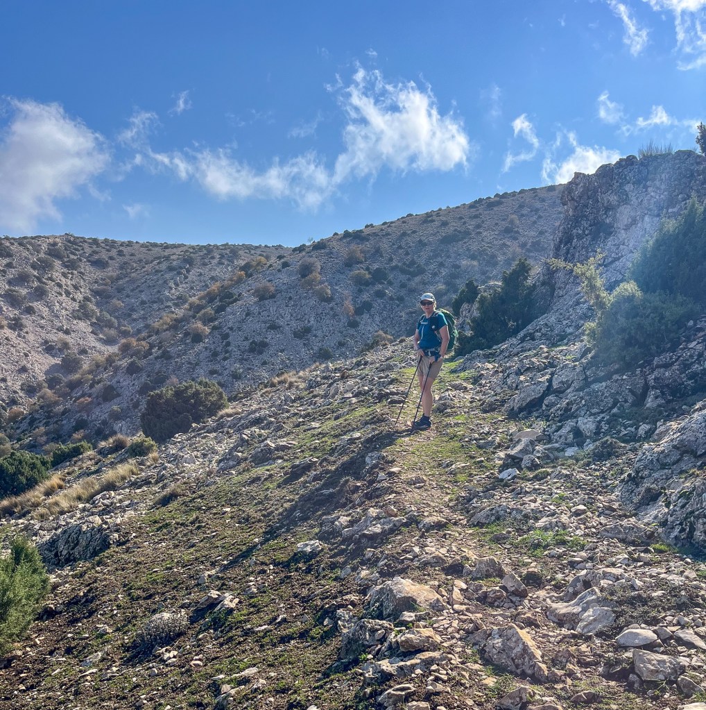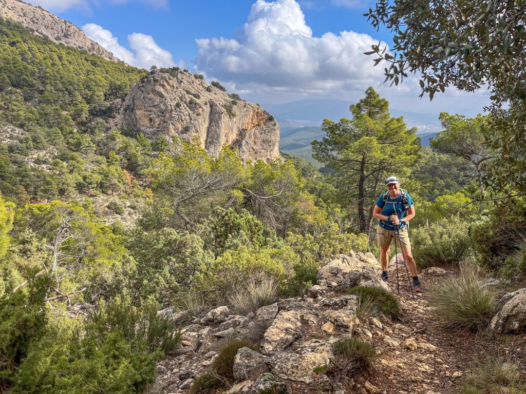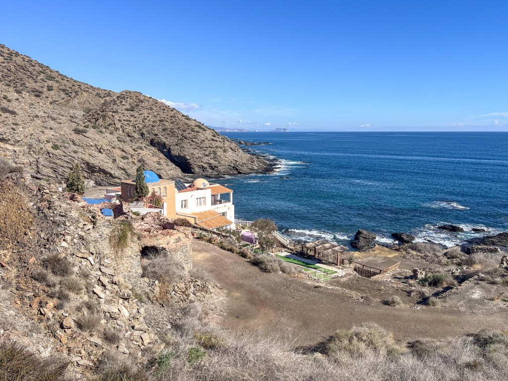 En gammel kjenning fikk besøk. Peniscola meldte om mindre regn enn innlandet. Da ble den vinneren for ett par dager.En ny værmelding gav oss muligheten for ett opphold i en av dalene innafor Valencia. Ny Via Verde. Dette er fra Caudiel.Via Verde’en er 184 km lang. Den går fra gruvene i Ojos Negros til Sagunto ved kysten nord for Valencia.Gammelt og nytt. Til venstre går det dieseltog, både passasjer og godstrafikk.Gammel og ny viadukt for jernbanen. Den lengst fra oss er bygd for tyngre transport.Mens det fremdeles blomstrer kommer advarselen om mye nedbør i Valencia regionen. Vi kjører sørover mot Alicante og Benidorm området. Regn ja, men ikke i de mengdene.Borg i innlandet innafor AlicanteHvor mange nederlendere skal til for å klippe disse små grenene?😉 Bobil-parkeringen i Albir var drevet av et nederlender. Når noe skulle gjøres var det mange frivillige. Etterpå var det Petanque. Sånne store klinkekuler i metall. Yndlingshobby for mange her sør.Vi gikk på tur med de langtidsferierende, Ann Elise og Jan Rikard.Fin tur ut til fyret.Utsikt mot Atea.Ann Elise og Merete ved fyret.Litt vin, ost og en god latter hører til.Gamlebyen i Altea.Utsikt fra Altea til fyret med omland vi besøkte dagen før.Gammel og nytt. En liten fiskebåt, et par vannskutere og ytterst ligger fiskeoppdrettet.Etter noen dager ved Middelshavets strender er det pånytt tid for fjell. El Berro i naturparken Sierra Espuna. Fem år siden vi var på campingen her. Herlig liten landsby inne i naturparken. Parken ligger litt sør-vest for Murcia.Gode turer langs merkete stier og veier i parkenLite aktivitet i klatrefjellet. Midt i uken og kanskje litt for varmt i sørveggen.De kaller dette for dinosaurstien. Vi så ingen. Eneste utfordring var en gyngende gangbro.Dette nedlagte hospitset inne i parken har sett bedre dager. Ingen drift. Det blir nok heller ikke solgt pga av restriksjonene i parken.I El Berro derimot er husene tatt godt vare på.Puh. Toppen av skaret. 7 kilometer motbakke og 600 høydemeter.Fra skaret var det 400 høydemeter igjen og 5 kilometer med en gammel ferdavei.Nesten toppen av verden.For en dag. 1500 meter over havet og over tyve varmegrader.Kveldstemning i El BerroSiste tur gikk rundt toppen Sierra Espuna. Tøft nok det. Det ble mye opp og ned og 900 høydemeter.Stien oppover i dag gikk på en vannvei. Vannledningen lå nedgravd på denne oppbygde stien. Eller var det en gammel levada?For fem år siden så alle disse gamle ishusene ut som ruinene til høyre på bildet. To var blitt bygd opp til sin gamle størrelse.De er noen imponerende byggverk. Ca 10 meter ned under bakkenivå.Både finansiert og premiert av EU.Skraphandler og kunstner i El Berro.Tilbake til stranda i Villaricos. En av de få stedene campingbiler får parkere gratis på stranda, 20 meter fra havet.Nesten vindstille. Tid for grilling.Når disse kommer på markedet, er det bare å nyte.Søndag er markedsdag i Villaricos. Ferskere mat får du ikke.Dagens avslutning. Grillvask i solnedgangen.Idag lever byen på noen lokale fiskere, turisme og pendlingGruvedrift har vært hovedinntekten i mange år. Dette er slagghauger fra 1800-tallet.Nordover ligger en 6 kilometer sti langs havet. Den heter stien til smelteovnene, og dem var det mange av.Det er mange ruiner lang kysten. Noen er tatt vare på.Ved slutten av kyststien lå dette stedet. Helt i havet og lang til nærmeste nabo. Egen bukt, strand og noen ruiner da. Det hører liksom til på denne fredelige del av kysten.