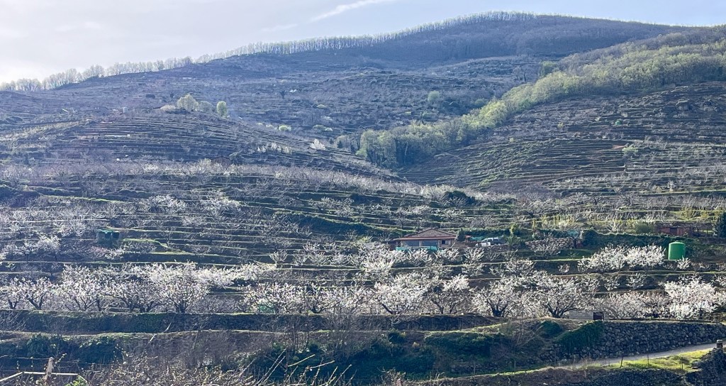 Så var vi to tilbake i campingbilen. På tide å tenke litt nordover. Vi besøkte El Torcal visste seg i bedre humør da vi kom forbi en gang til. Valle de Jerte ligger øst for Madrid. Den er kjent som Spanias kirsebærhage. Vi var spent på om våren var kommet langt nok for blomstring.