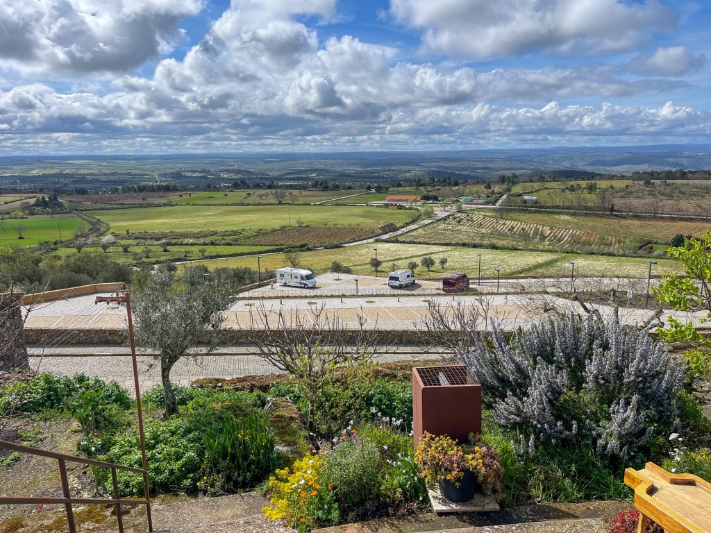 Vi kjørte inn i Portugal for å få 150 000 km service på campingbilen. God erfaring fra tidligere servicer brakte oss til Guardia ved nordlige Serra da Estrela. Noen dagers venting på deler til bremsene. Men hva gjør det når vi har de portugisiske grensebyene å besøke. Vi besøkte 5 grensebyer denne gangen før vi trakk nordover inn i Spania. Der vandret vi litt i gamle trakter til Camino de Santiago.