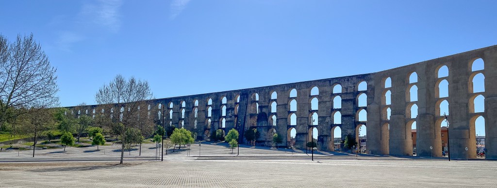 Så endelig kom vi til Elvas. Svært etterlengtet etter at en spansk taxisjåfør satte oss av her for et år siden. Portugals fineste by sa han, og vi er ikke uenig med han. Spanjolene prøvde opp gjennom hele 1700 tallet å innta denne byen. De beleiret den i flere måneder, men klarte aldri trenge inn i byen. Den ligger strategisk til på det eneste stedet hvor det er sletteland uten elver og daler mellom Spania og Portugal. Det blir en del krigshistorie her. Byen står på Unesco liste over verneverdige forsvarsverker fra sin tid. Ifølge Unesco består byen av 12 borger satt sammen i et irregulært polygon, sentrert rundt slottet. Byen ble forsynt med vann via en 7 km lang aquaduct.