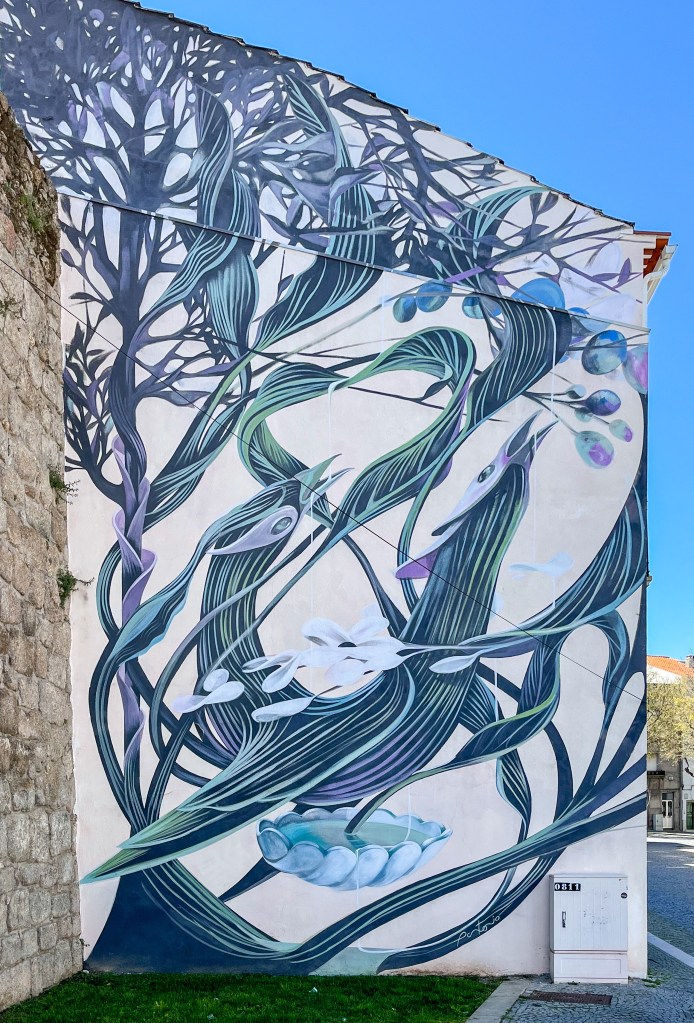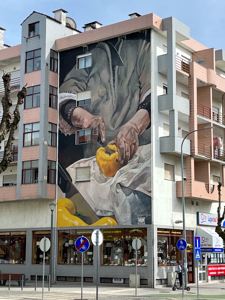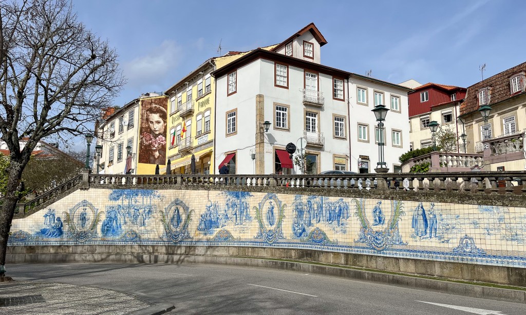 Viseu er en av de største stedene i Dao-området i Portugal. Portugiserne selv sier at den beste portugisiske vinene kommer fra Dau. Fra Viseu gikk det for 100 år siden to jernbanelinjer, en vestover til havet og en sørover. Idag er jernbanesvillene borte, erstattet med asfalt og eller grus. !00 kilometer med gang og sykkelvei er en vinner.Denne bygningen var nok mer i riktig tidsånd da jernbanen gikk forbi.Gammelt market, nå stengt for oppussing.En hel vegg til ære for paprikaenDrømmer vi alle om bil med vinger på?Byparken hadde påfugler som var mer eller mindre tamme.Dette er vel stjerten til å briske seg med!Og briske seg gjør de.Vi turister bivåner.Vi er fremdeles i Portugal. En kjedelig murvegg er ombygd til å fortelle byens historie ved hjelp av blå-hvite fliser.Vi dro opp i nasjonalparken Serra do Estrela. Campingen i Gouveia ligger på 1000 m.o.h.. Vår i lufta.Nordavinden er kald over alt, flagget vaier vakkert i vinden.Nede i dalen går vi gjennom historie med møller og vannveier.Akvadukter benyttes også i dag til å lede vannet fra fjellet og ned til gårdene.Utsikt over Dao-dalenPå andre siden av fjellet fikk vi overnatte ved byens fritidspark. På toppen er Guardas gotiske katedral.Litt mere moderne uttrykk.Fredfull plass