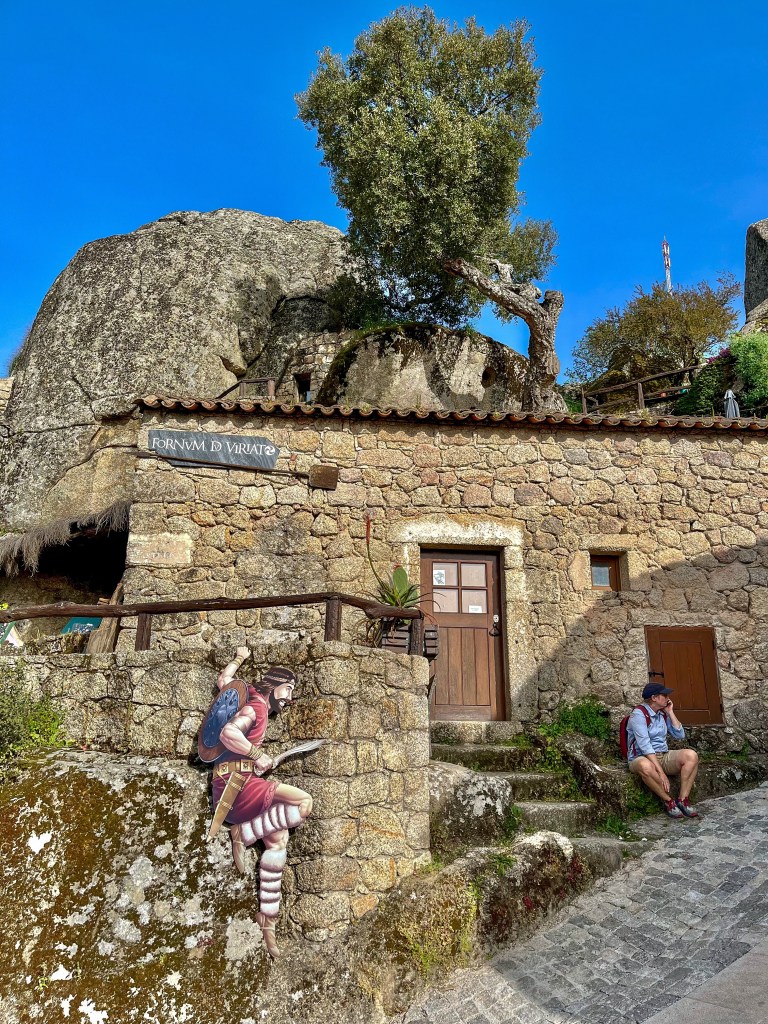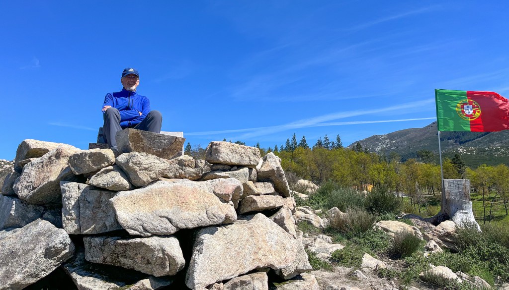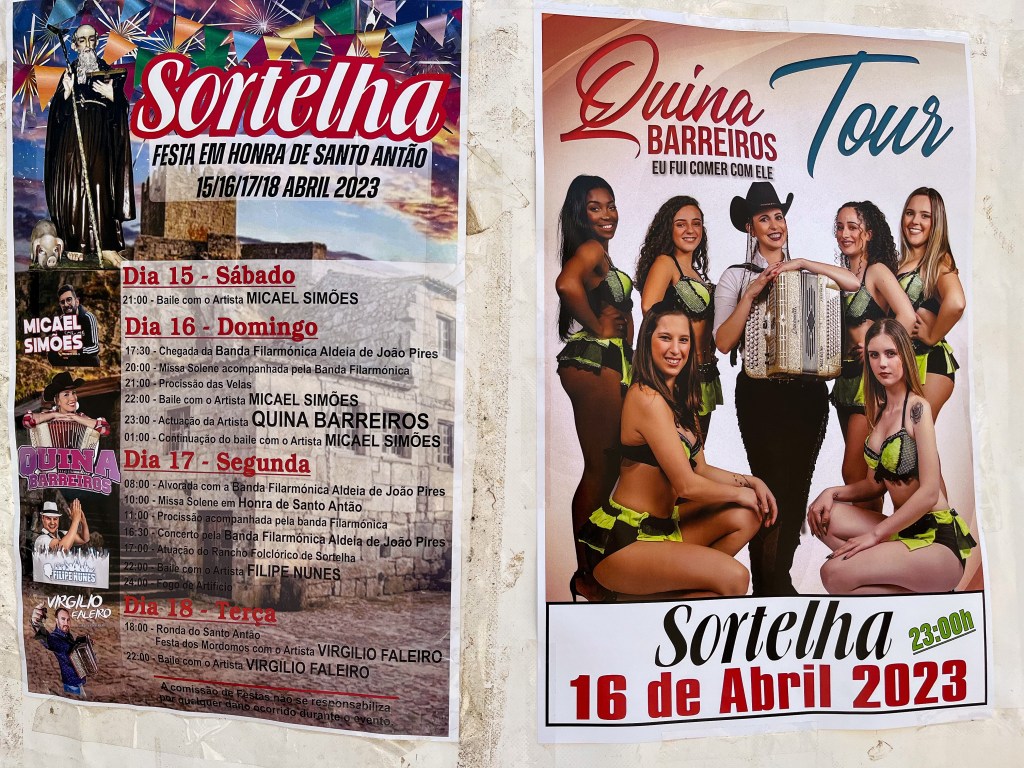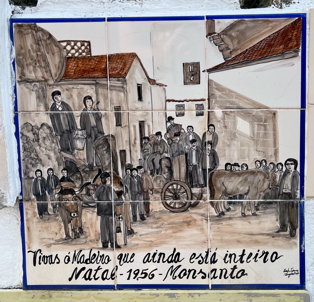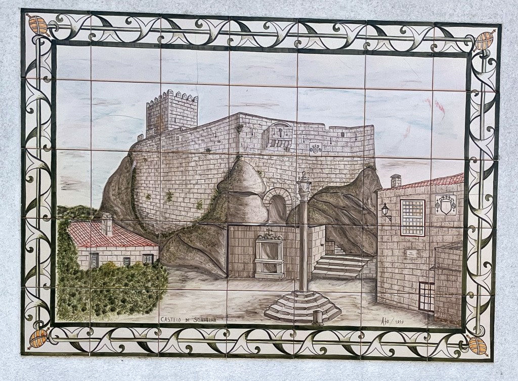 Monsato. Hmm…skjult perle oppe på haugenVi kunne overnatte blant andre bobiler.Fra toppen er det god utsikt over landskapet rundt MonsatoOg dette er gravene etter noen religiøse høvdingerHmmmByen er bygd mellom og av store steiner.Eller hva med dette huset – bygd rundt en steinIkke beregnet på dagens biler disse gamle portene inn i byenGammelt og nytt kommunikasjonsutstyr – sverd og mobiltelefon.Du skal være god til beins for å bo her.Fra borga er det god utsikt.Også turistene må bryne seg på bakkeneMere utsiktDet var en antikvitetsbutikk som hadde utstilt disse flisemaleriene fra livet i gamle dager. Neste sted, Idahna a Vehla, er en av de eldste byer i Portugal. Det en by med spor etter alle som har styrt her. Her også har alle vært, romerne, visigoths, maurerne og naboene fra Spania.Disse lave bygningene er typiske på 1500 tallet. De hadde vel ikke aircon da.Noen bygg har naturen overtatt.Denne kirken har detaljer som viser en historie på over 2000 år, også før kristendommen.Noen jobbet hardt ved dødsfall. Solide kister.Jordeierne levde godt på 1700 tallet.Solide bygninger av lokal stein.Sortelha på flismaleriSortelha idagDe kunne steinarbeidet sitt. Trappe murt i inn i bymurene.Disse byene ligger på steder der man kan benytte de lokale formasjonene til forsvarsverk. Det var feiring av en helgen i Sortelha den uken. Vi smilte litt til plakaten for kvelds-underholdningen. Etter kl. 23.00 Avslutningsvis fra Portugal. Vi stoppet ved flere lokale badestrender i innlandet. De demmer opp små elver og lager nydelige fritidsområder for befolkningen. Kjekt med en dukkert i områder hvor sommertemperaturen når 40 grader.