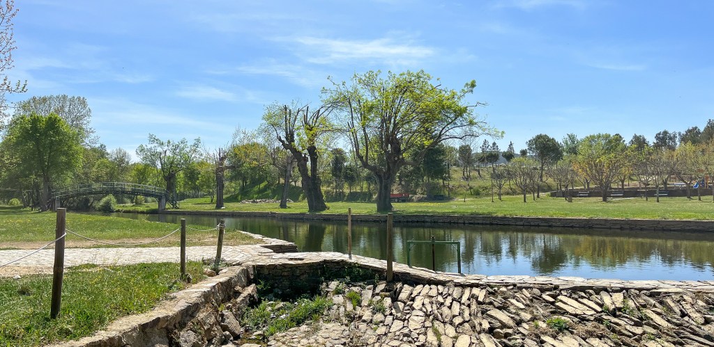 Fra Alcoutim fortsatte vi ferden nordover i grensetraktene med Spania. På 1700-tallet var det krig her nesten kontinuerlig. Spanske kongen prøvde gang på gang å overta hele Portugal. Gamle borger fra romertiden, tempelridderne og maurerne ble oppgradert i de dager. Idag vitner borgene om en urolig tid. Allikevel så reiser vi rundt og beundrer borgene og alle «befestete» byer. Midt i dette har vi fått tid til 115000 km service på hytta vår. Mange byer har en kombinasjon av park, lek- og treningsanlegg som er til fri bruk. Wow.