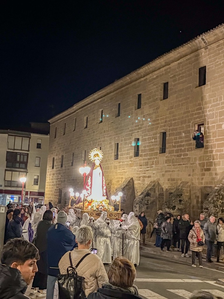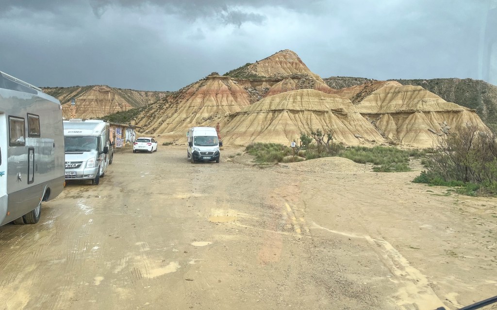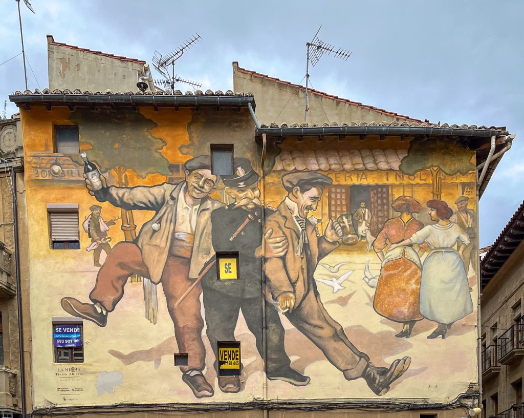 Haro kaller seg riojaens hovedstadUtvalget var det ingenting å klage påDe var visst vant med at noen fikk for mye å drikkeDette er alvor. Alle er stilleIkke så mye forskjell foran og bak på disseTrommene dominerte lyden i byenAlle veier i påsken førte opp til denne kirkenSpanske balkonger i hovedgata.Det dreidde seg om vinproduksjon i Haro. Innhøsting av vin i gamle tønnerMan må jo også tørke tårene.I Navarra besøkte vi et område som kunne minne om Monument Valley i USA.Menneskene hadde hugd all skog, dyrene spist opp gresset. Deretter skyllet regnet bort jorda. Resultat: menneske lagde ørken.Uvær denne dagen.HmmGrusveier i regnHemingway møter man flere steder i Navarra. Mest kjent er nok Pamplona. Men han kom hit til Lekunberri for å slappe av fra stresset i storbyen. Lekunberri er en småby oppe i de sørlige delene av Pyrineene. Veldig baskisk.Fra fjell til franske strender ved Atlanteren innerst inne i Biscayabukta.Du skulle være god til å ro når man for ut gjennom brenningene før i tida.Et tynt jordsmonn innenfor sandynene.Mens vi venter på sommeren. Fra en innsjø ved kysten utenfor Bordeaux.Fra vestkysten av Frankrike til nord – den engelske kanal.Saint Malo var bombet sønder dagene før D-dagen, ilandgangen i Normandie i august 1944.Minnesmerke over falne fra byen.Fra murene rundt byen. Ca 80% av byen ble ødelagt. Gjennoppbyggingen varte til utpå 1970 tallet. Da var tårnet på kirken ferdig.Mange øyer utenfor St. Malo er befestet. Men landfaste kun ved fjære. Forskjellen på flo og fjære er borti 15 meter.Så absolutt vår langs den engelske kanal, selv om kulingen var litt ilsken inni mellom.Alkymisten kan vel ikke hjelpe mot nordavinden.Litt inn i landet fant vi denne sjarmerende byen: Dinan. Full av historie. I dette tårnet går det ei vindeltrapp opp til toppen av bymurene.De gamle husene fra middelalderen blir tatt godt vare på.Ett litt skjevt klokketårn fra 1400-tallet. Med sine 43 meter høye tårn var dette byens rådshus til utpå 1800-tallet.Det var market i byen. Skal det være en sixpence?Hovedgaten opp fra elva. Mange skjeve hus.Slitsomt med byvandring. En kaffe med crepes smaker.Vandring langs kanalene i Frankrike er nydelig. Gjennom gamle landsbyer fra den tiden hvor vannveiene betydde mere for fremkommelighetenPlanlagt høydepunkt i nord-Frankrike var Mont Saint Michel. Dette stedet er på nivå med Eiffeltårnet når det gjelder nasjonale ikon i Frankrike. Kloster katedral og en liten landsby ute på en holme. Landfast ved fjære og en øy ved flo. Bortimot 15 meter forskjell mellom flo og fjæreDet mest spektakulære er beliggenheten og mystikken rundt stedet.Den dominerer landskapet. Her sett fra bobilparkereing, ca 3 kilometer fra stedet i luftlinjeNoen timer østover kom vi til elva Seine. Vi er ca 50km oppover elva fra Le Havre. Forskjellen på flo og fjære er borti 3 meter. God plass til større båter, som denne fraktebåten.Det fine ved å campe ved elvene er turveiene som ofte går langs elvebredden. Fortsatt La Seine.Vi reiste ikke dit!Eneste overnatting i Belgia ble ved byen Blegny. En nedlagt kullgruve med parkering både for dagsbesøk og overnattings gjester.Slagghaugen benyttes i dag til natursti med åpent museum. Gammelt utstyr står igjen der det ble forlatt.Hva med denne gassdrevne saken. Den dro på vogner både for kull og arbeidere.Transport til jobben.Neste elv er Elben. Her er flomvern ved en liten by som heter Hitzacker.Et hyggelig sted på en egen øy i en side elv til Elben.Vi har en liten forkjærlighet for disse tyske byggene.Inngangen til biblioteket inviterer til leselyst.Vi bobilturister legger igjen noen euro, selv på en gratis bobilplass. Her er det en av pizza leverandørene i Hitzacker som leverer på parkeringsplassen.Farvel til Tyskland. Ferje fra Rostock til Trelleborg i Sverige.Velkommen Hornborgasjøen. Litt kalt ved Fugleodden.Litt av av et fuglereservat.Innsjøen er mest kjent for tranedansen helt sør i sjøen. Den er litt av et skue i månedsskifte mars april. Men det var traner her, også midt i april.Parkering rett ved traneplassen. Maskotten Unge Thoresen er med.