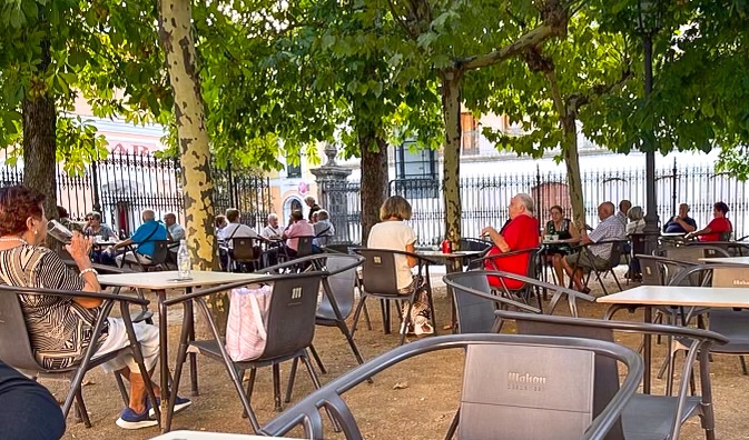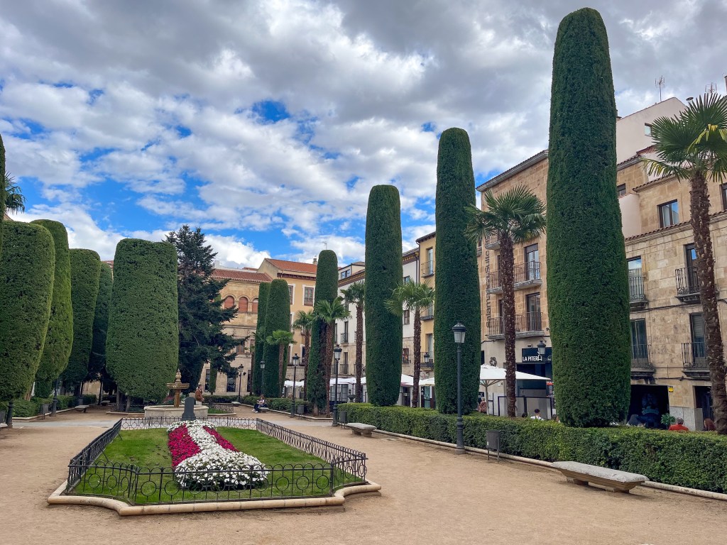 Da har vi kommet oss enda 150 km avgårde. Totalt ca 300 km. Da skal vi være ærlige å si at et par taxi-turer i løpet av disse to ukene har hjulpet på. Da er det godt med et par hviledager i Salamanca. Svein måtte få seg større sko. Det ble for trangt med opphovnete ben i de gamle. Hva gjorde vi før internet-butikker? Kjøpt fra nettbutikk og hentet i en postboks i Salamanca. Den verste sommervarmen har gitt seg. Max temperatur nå har vært 25-27 grader. I løpet av uken har vi kommet opp på ett platå som ligger på 700 – 900 m.o.h.. Mere kupert landskap og grønne skoger.