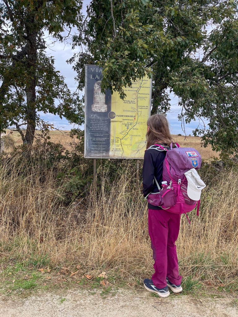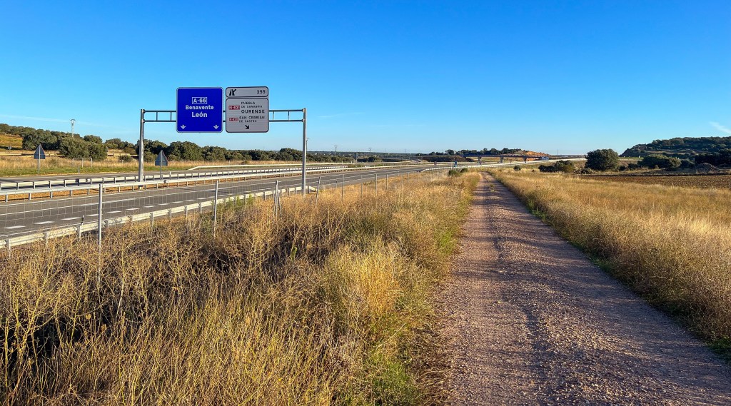 Ut fra Salamanca ble en helt grei dag. De første kilometerene var asfalt. Deretter kom vi overraskende fort ut på landsbygda. Vi gikk gjennom noen småsteder som bar preg av å være «soveby» til storbyen Salamanca. Ingen service for oss vandrere. Hele veien nordover går vi ved siden motorveien A66 og den ordinære 2 feltsveien N630.