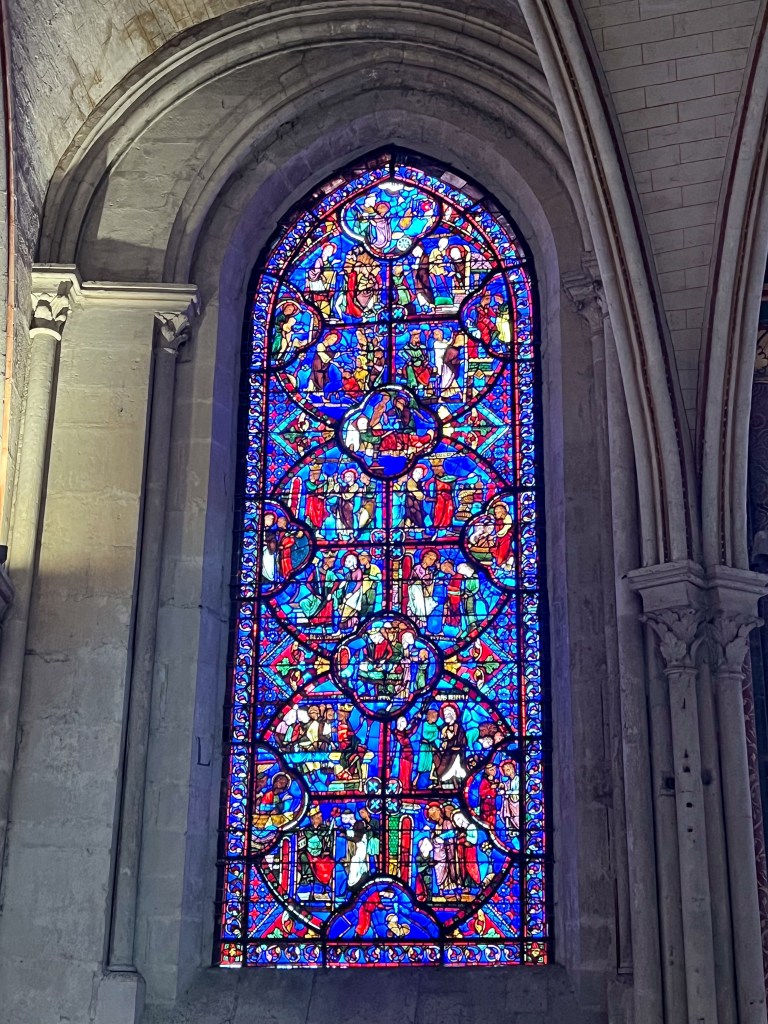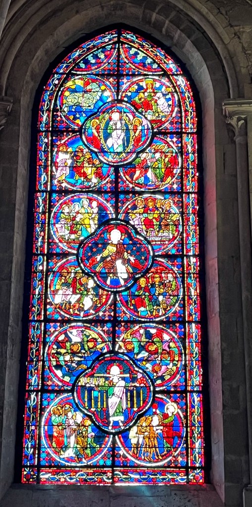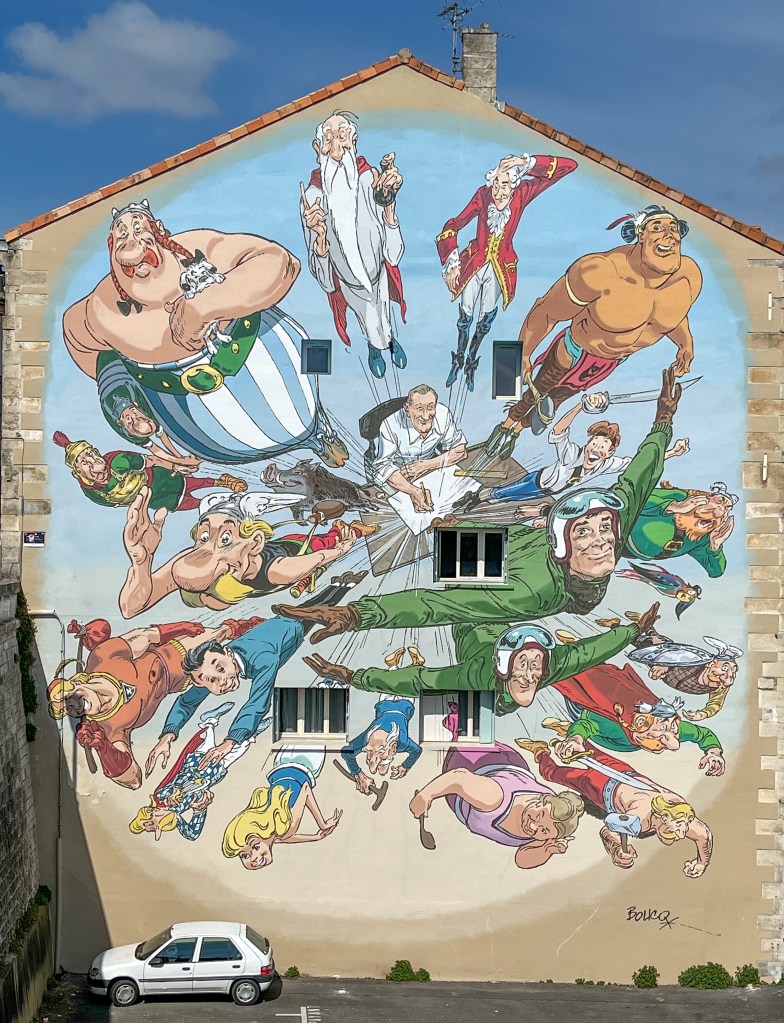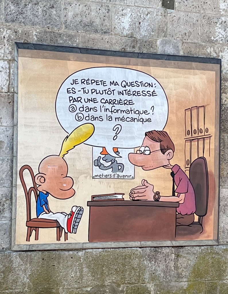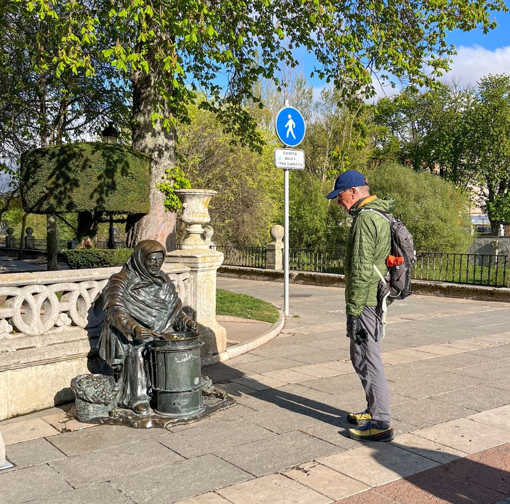 Gjensyn med Burgos Katedralen i Burgos er noe av det mest spektakulære på hele camino francesBlomsterbedene er klare for vårenMåtte hilse på en gammel kjenning – kastanjegrillerskenDer nede kom vi gående for 5 år sidenVi besøkte stamstedet til Hemingway – Cafe Iruna. Iruna er det baskiske navnet på Pamplona..Okseløpene i Pamplona er velkjente. Vi nøyde oss med en plakat på en bar.Vi hadde blitt anbefalt å dra innom et juv øst for Pamplona; Foz de Lumbier. Det ble en fin avveksling til bilkjøringBratt noen steder, men godt sikret.Det spøkte i en gammel jernbanetunnel.Første stopp i Frankrike var ved elva Dordogne. Litt nordøst for Bordeaux. Gratis overnatting i en landsby som heter Asquer.Vi hadde det ikke travelt. Søkte etter områder med turområder og gratis parkering. Franske landsbyer har ofte en liten parkeringsplass for bobiler. Det kan vi stå i 48 eller 72 timer.Touvre hadde sitt eget fiskeoppdrettsanlegg. I noen dammer fikk de besøkene prøver fiskelykken. Catch & release er en populær aktivitet i Frankrike.Vi måtte stoppe i byen Angulème. Den er kjent for å være hovedsetet for tegneserier i Frankrike. Her er noen tegninger på husveggene.Den lille bilen er virkelig. Hele veggen er dekket av tegneseriefigurer som er relatert til byen Anqulème.Hva er virkelig og hva er maleri?Etter byvandring var det godt å overnatte ved en innsjø. Typisk innland Frankrike. Gratis parkering, fiske (catch & release), tursti rundt innsjøen og en dyr cafe.Siste katedral på denne turen. Katedralen i Bourges er kjent for sine blyglass og glassmalerier. Den er gedigen. Maleriene er fra 12-1300 tallet.Loire en den lengste elven i Frankrike med en lengde på 1006 km. Og et nedbørfelt på 117 356 km2. Dette tilsigsområdet utgjør mer enn en femtedel av Frankrike. Elven løper helt fra Massif Central i mot sør, så nordover og til slutt mot vest gjennom Vest-Frankrike. (Wikipedia)Vi stoppet et par dager ved Chatillon sur Loire. Her hadde vi en nydelig bobilparkering ved siden av kanalen som går langs elva Loire.Smarte clampingteltMed sine små side-elver og kanaler er dette området helt nydelig turområde. Her kan man padle, sykle, løpe eller gå.Kanalene her er brede nok til relativt store husbåter. De er gjerne «parkert» utenfor fritidsboligen.Eiffel har vært her og bygd kanaler og sluser