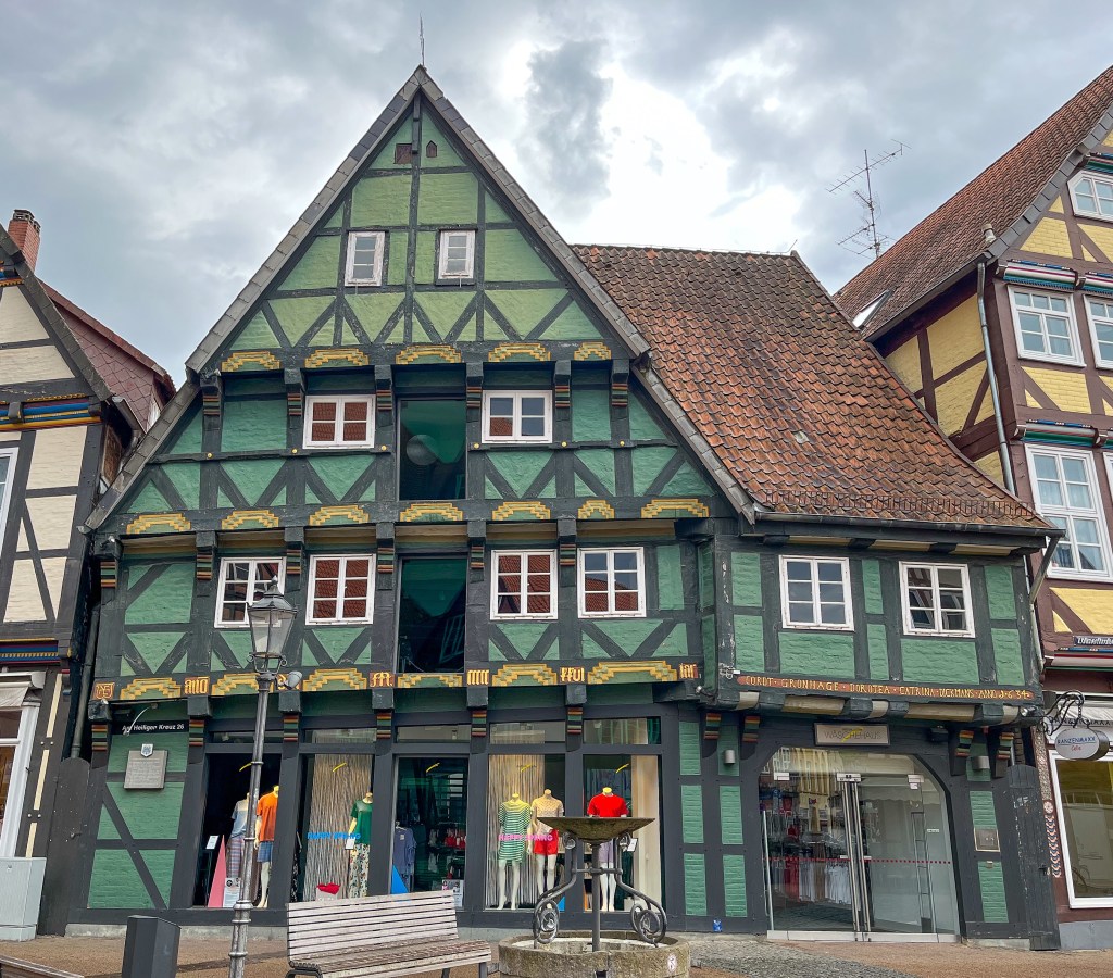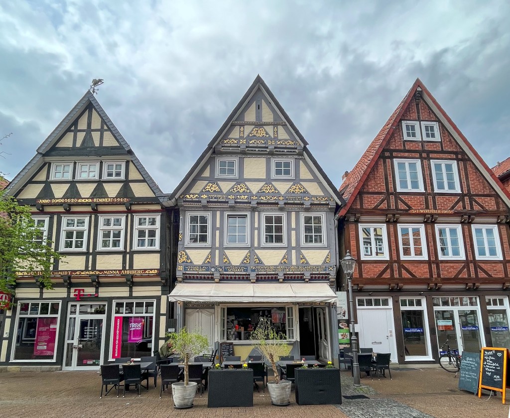 Hva med lunsj i en kanalbåtPen utsmykking på denne viadukten.En manuell sluse fra 1880 talletDet ble noen fredsommelige dager ved Loire elva.Så kjørte vi nordøstover. Rapsen sto i full blomst. Vi hadde ett dieselstopp i Luxembourg. Deretter bar det inn i Tyskland. det er en fordel å kjøre gjennom Tyskland i helger, særlig på søndag. Da er mange autobaner stengt for store lastebiler og vogntog.Vårt favorittsted på veien gjennom Tyskland er Alsfeld, byen med mange skjeve hus fra 1500 tallet.Ikke mange byer med en slikt rådhus.Byen torg en kveldstime før regner kommer.Vi forflyttet oss til et sted vi hadde hørt mye pent om – Celle. Den hadde noen nydelige parkanlegg.Våren soler seg i kanalen.Celles eldste hus fra 1532.Celle er større og mere oppusset enn Alsfeld.Mere striglet med næringslokaler på bakkenivå. Så har de satt inn stålbjelker for å holde på den gamle konstruksjonen i de neste etasjene.Det hjelper med vann og solspeiling.Siste overnatting i Tyskland var i Travemünde. Her ventet de på sommeren.Så absolutt, takk for denne turen.